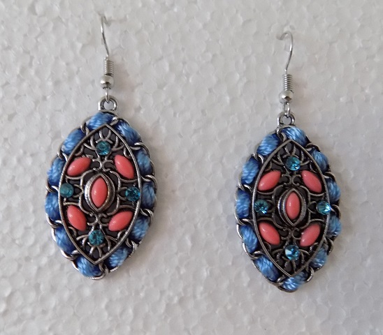 náušnice visací z patinovaného kovu etno styl, bohatě poseté korálky a provlékané zdobnou šňůrkou, etno styl, zapínání na africké háčky
