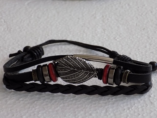 ozdobné prvky z korálků, ozdobné kovové prvky, ozdobný stříbrný list, zapínání náramku na středový posuvný uzel, kterým můžete náramek povolit nebo utáhnout
