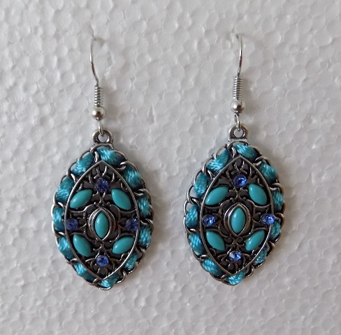 náušnice visací z patinovaného kovu etno styl, bohatě poseté korálky a provlékané zdobnou šňůrkou, etno styl, zapínání na africké háčky