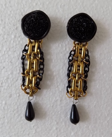 se vzorem, náušnice jsou vyrobeny z bižuterního kovu pokrytého vrstvou patiny, kombinace černé a zlaté, pro denní nošení i do společnosti, zapínání na kolík a silikonovou koncovku